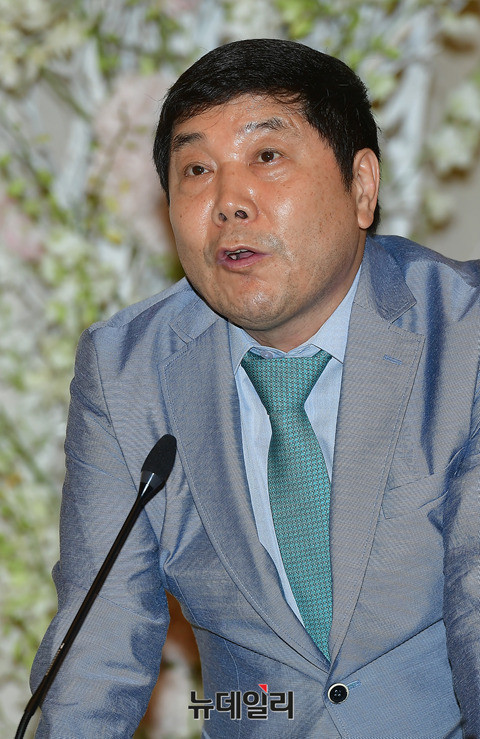 송대관 폭언 논란의 당사자인 홍상기 씨와 가수 김연자 씨가 30일 오전 서울 서초구 더리버사이드호텔에서 기자회견을 열고 당시 상황을 설명하고 있다.