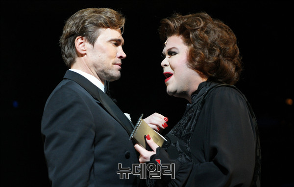 배우 브렌드 바렛이 30일 오후 서울 용산구 블루스퀘어 삼성전자홀에서 열린 뮤지컬 '시카고' 오리지널 내한 프레스 리허설에 참석해 극중 한 장면을 시연하고 있다.
