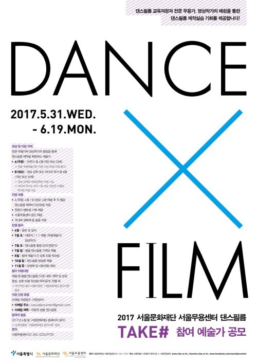 댄스필름 프로젝트 'TAKE#' 공모는 서울무용센터 이메일(seouldancenter@gmail.com)로 접수받는다. 문의 02-304-0234/9735.