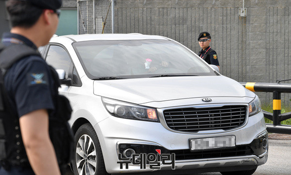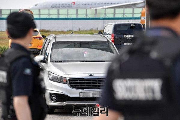 최순실 씨 딸 정유라 씨가 탑승한 차량이 31일 오후 인천국제공항에서 서울중앙지검으로 향하고 있다. 이후 정씨는 서울 중앙지검으로 압송돼 조사받을 계획이다.