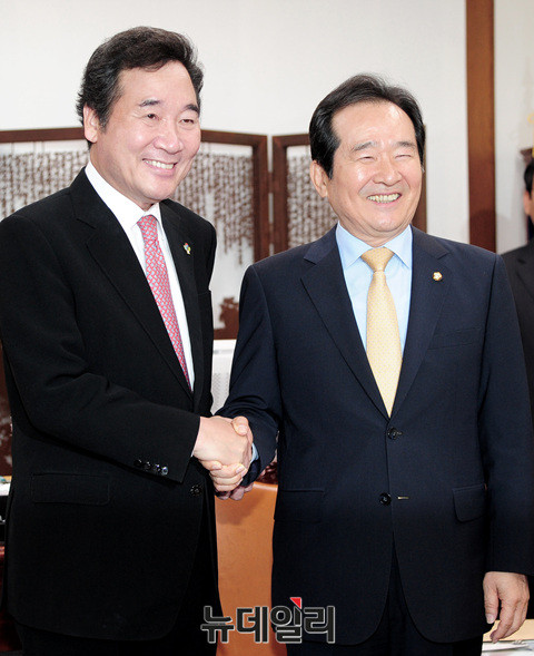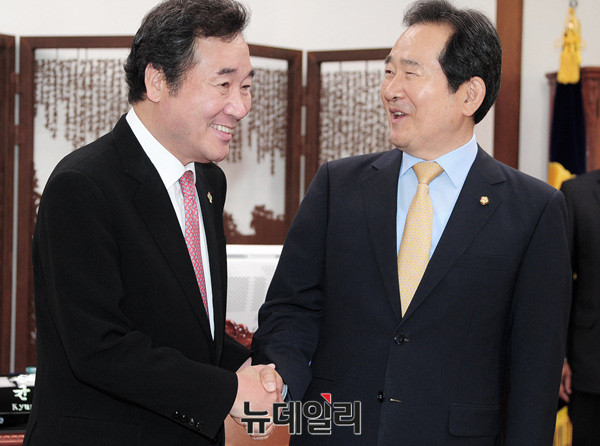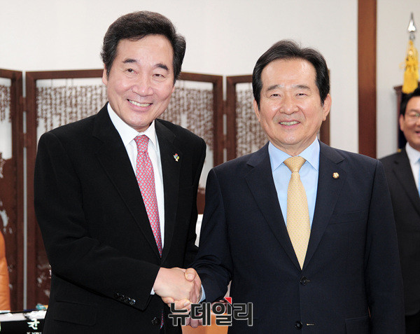 이낙연 신임 국무총리가 1일 오전 국회의장실에서 정세균 국회의장과 악수를 나누고 있다.