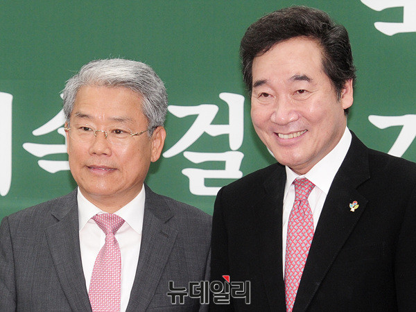 이낙연 신임 국무총리가 1일 오전 국회에서 김동철 국민의당 원내대표를 예방해 악수를 나누고 있다.
