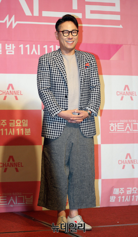 가수 윤종신이 1일 오전 서울 마포구 스탠포드 호텔 그랜드불룸에서 열린 채널A 예능 프로그램 '하트시그널' 제작발표회에 참석해 포토타임을 갖고 있다.