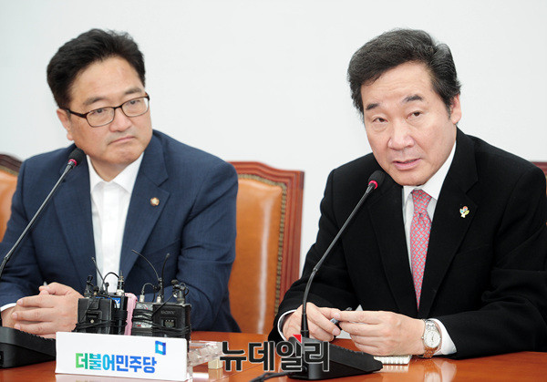 이낙연 신임 국무총리가 1일 오전 국회에서 우원식 더불어민주당 원내대표를 예방해 악수를 나누고 있다.