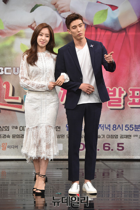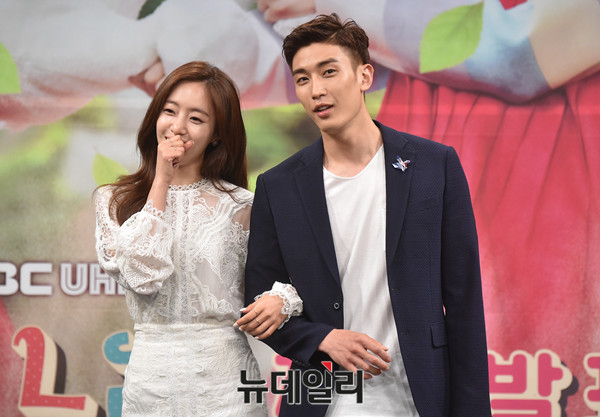 MBC UHD 특별기획 드라마 '별별 며느리' 제작발표회가 2일 오후 서울 마포구 상암동 골든 마우스 홀에서 열린 가운데 배우 함은정, 강경준이 포토월을 갖고 있다.