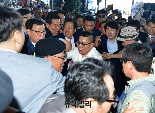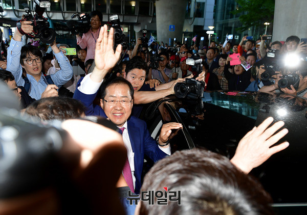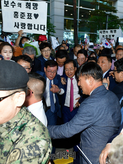 홍 전 대선후보는 지난 5월 12일, 차남 정현 씨 부부가 있는 미국으로 출국했다. 자유한국당은 오는 7월 3일 전당대회를 앞두고 있다. (인천=뉴데일리 정상윤 기자)