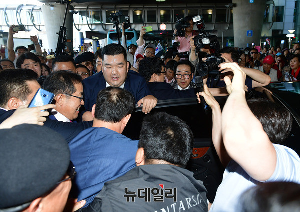 홍준표 전 자유한국당 대선후보가 4일 오후 인천공항으로 입국한 직후 차에 오르고 있다. 홍 전 대선후보는 미국으로 출국한지 약 3주 만인 4일 오후 귀국했다. 입국장에는 홍 전 후보를 응원하는 지지자로 붐벼 게이트를 변경해 입장했다. 도착 후 환영행사가 예정돼 있었지만 지지자들로 붐비자 짧은 인사말을 전하고 차에 올랐다.
