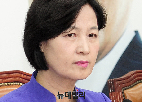 추미애 더불어민주당 대표가 5일 오전 국회 당대표실에서 최고위원회의를 주재하고 있다.