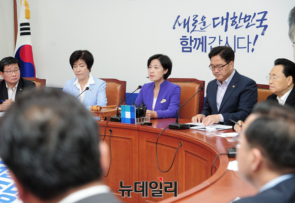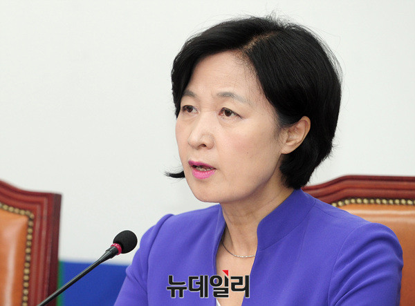 추미애 더불어민주당 대표가 5일 오전 국회 당대표실에서 열린 최고위원회의에 참석해 발언하고 있다.