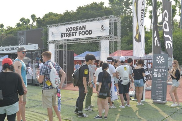 해외 관객들에게 많은 인기를 모으고 있는 코리안 스트릿 푸드 존에서는 김치전, 해물부추전, 떡볶이, 순대, 쟁반국수까지 한국을 대표하는 음식들을 만날 수 있어 색다른 재미를 더한다. 여기에 맥주, 샴페인 등 다양한 주류가 있어 마시는 즐거움도 가득하다.