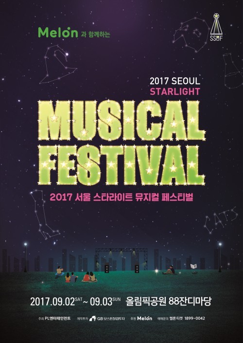 '2017 서울 스타라이트 뮤지컬 페스티벌'은 9월 2일과 3일 양일간 서울 올림픽공원 88잔디마당에서 열린다. 문의 1899-0042.