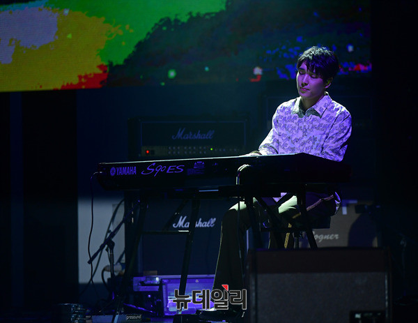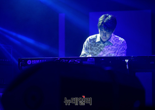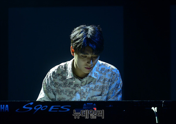 밴드 FT아일랜드(최종훈, 이홍기, 이재진, 송승현, 최민환) 리더 최종훈이 7일 오후 서울 광진구 예스24 라이브홀에서 데뷔 10주년 기념 앨범 쇼케이스 무대에서 키보드를 연주하고 있다.