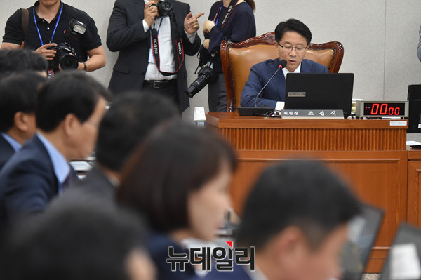 조정식 국토교통위원장이 7일 오후 국회에서 열린 국토교통위원회 전체회의에서 의사 진행을 하고 있다.