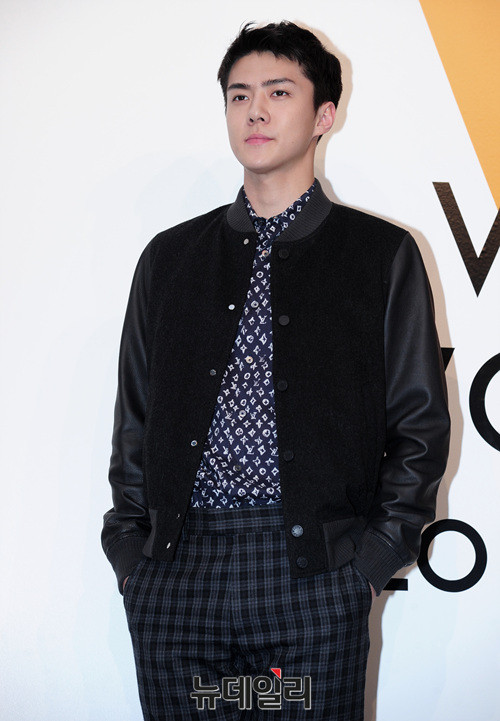 엑소(EXO) 세훈이 7일 오후 서울 동대문디자인플라자(DDP)에서 열린 '비행하라, 항해하라, 여행하라-루이비통' 전시 개최 기념행사에 참석해 포토타임을 갖고 있다.