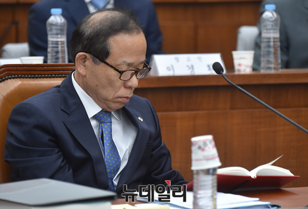 김이수 헌법재판소장 후보자가 8일 오전 국회에서 열린 법제사법위원회 인사청문회에 참석해 자료를 검토하고 있다.