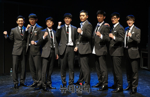 연극 '모범생들' 출연 배우들이 8일 오후 서울 종로구 드림아트센터에서 열린 '모범생들' 프레스콜에 참석해 포토타임을 갖고 있다.