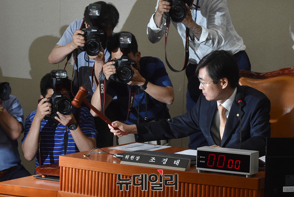 조경태 기획재정위 위원장이 9일 국회에서 열린 기획재정위원회 전체회의에서 김동연 경제부총리 겸 기획재정부 장관 후보자 인사청문보고서를 상정하고 있다.