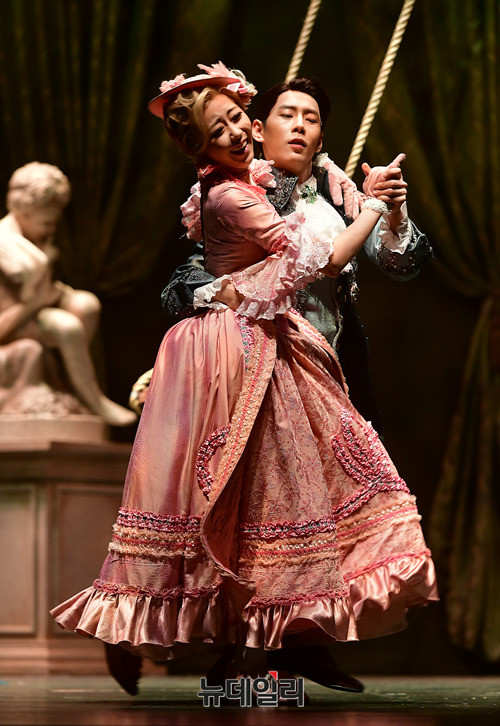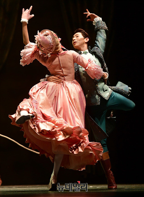 배우 한선천, 최예원이 9일 오후 서울 강남구 LG아트센터에서 열린 뮤지컬 '댄스시어터 컨택트(Dance Theater Contact)' 프레스콜에서 하이라이트 장면을 시연하고 있다. 뮤지컬과 무용이 결합된 '댄스시어터 컨택트'는 8일부터 18일까지 열흘간 LG아트센터에서 공연 된다.