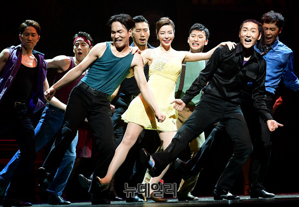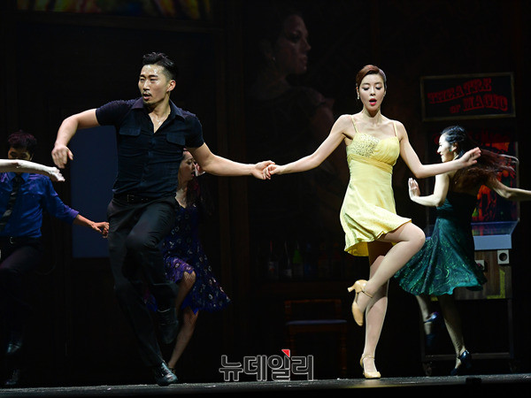노란드레스여인 역을 맡은 배우 김규리가 9일 오후 서울 강남구 LG아트센터에서 열린 뮤지컬 '댄스시어터 컨택트(Dance Theater Contact)' 프레스콜에서 '에피소드 컨택트' 장면을 시연하고 있다. 뮤지컬과 무용이 결합된 '댄스시어터 컨택트'는 8일부터 18일까지 열흘간 LG아트센터에서 공연 된다.