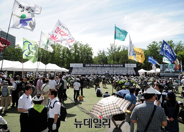 6월민주항쟁30년사업추진위원회와 서울특별시가 10일 오후 서울광장에서 '제26회 민족민주열사·희생자 범국민추모제'를 개최했다.