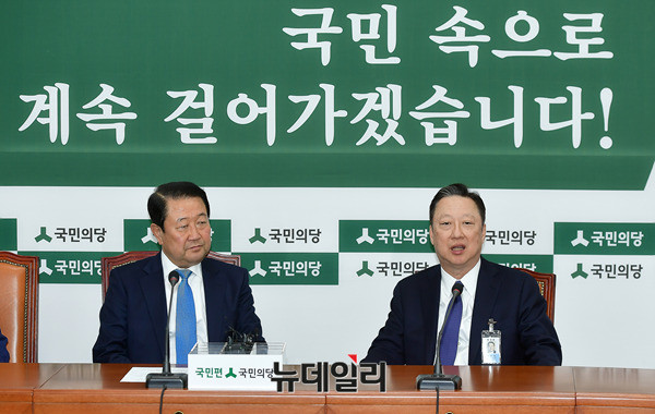 박용만 대한상공회의소 회장이 12일 오전 국회 국민의당을 예방해 박주선 비상대책위원장과 대화를 나누고 있다.