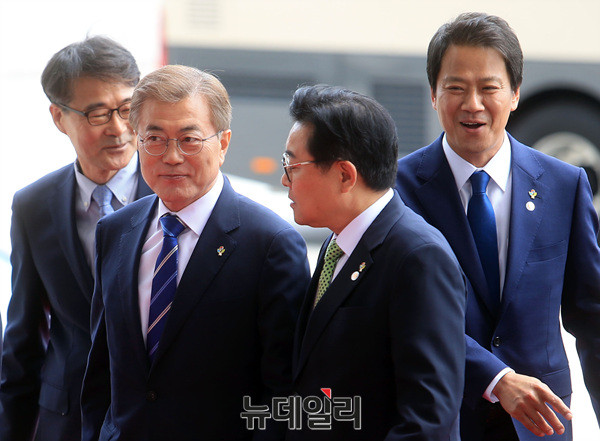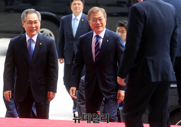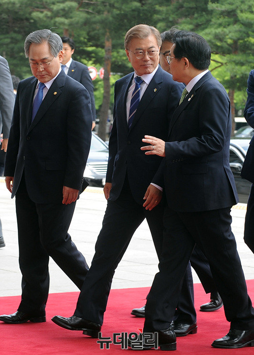 문재인 대통령이 12일 오후 국회에 들어서고 있다. 이날 문 대통령은 본회의에서 일자리 추가경졍예산안에 대한 목적과 필요성을 설명하는 시정연설을 할 예정이다. (사진=공동취재단)