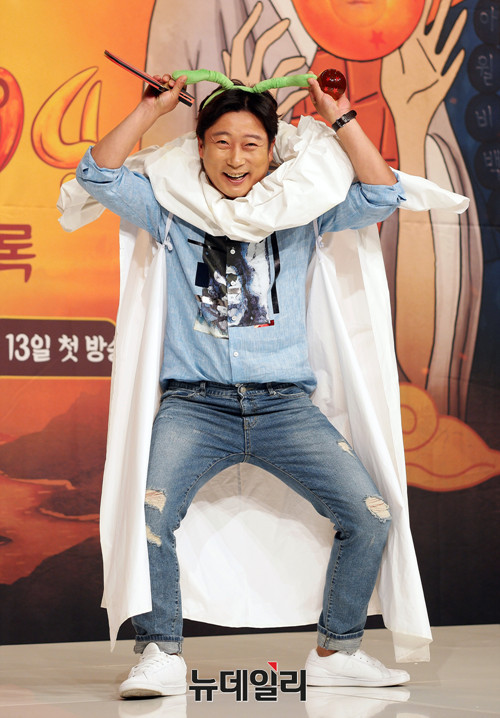 개그맨 이수근이 13일 오후 서울 영등포구 타임스퀘어 아모리스홀에서 열린 tvN 예능프로그램 '신서유기4' 제작발표회에 참석해 포토타임을 갖고 있다.