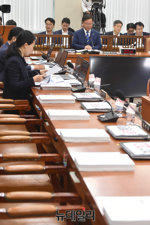 김부겸 행정자치부 장관 후보자가 14일 오전 국회에서 열린 인사청문회에 출석해 자유한국당의 의원들의 불참으로 늦어지는 회의 시작을 기다리고 있다.