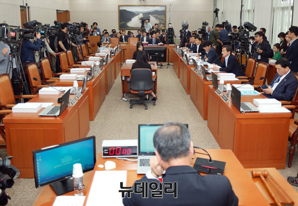 김영춘 해양수산부 장관 후보자가 14일 오전 국회 농림축산식품해양수산위원회에서 열린 인사청문회에 참석해 자유한국당 의원들의 입장을 기다리고 있다.