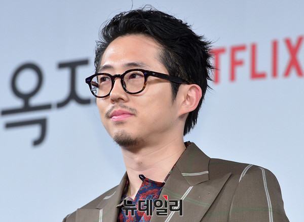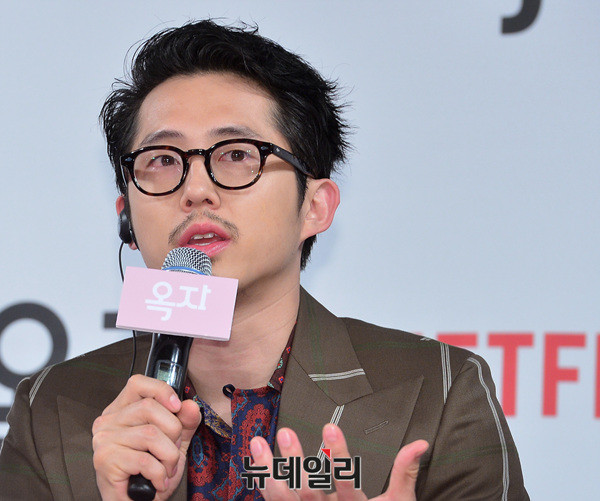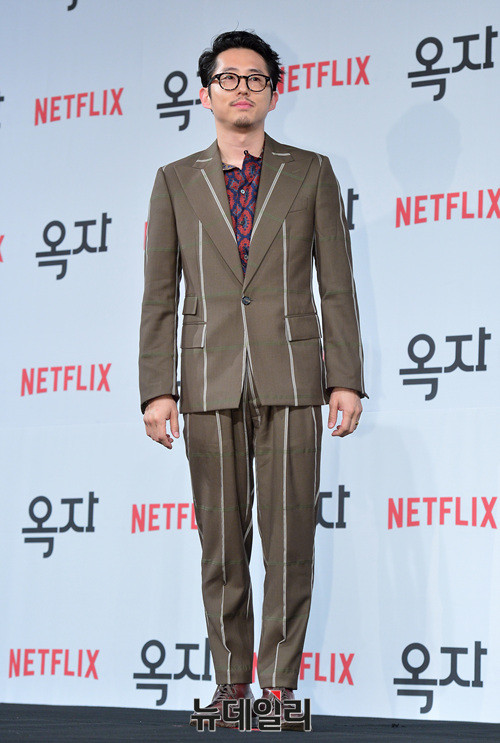 영화 '옥자(감독 봉준호)'에서 동물보호단체 ALF(Animal Liberation Front, 동물해방전선)의 2인자 케이 역을 맡은 배우 스티븐 연(Steven Yeun)이 14일 오전 서울 종로구 포시즌호텔 서울에서 열린 제작보고회에 참석해 포토타임을 갖고 있다. 스티븐 연은 지난 12일 영화 '옥자' 홍보차 내한했다.