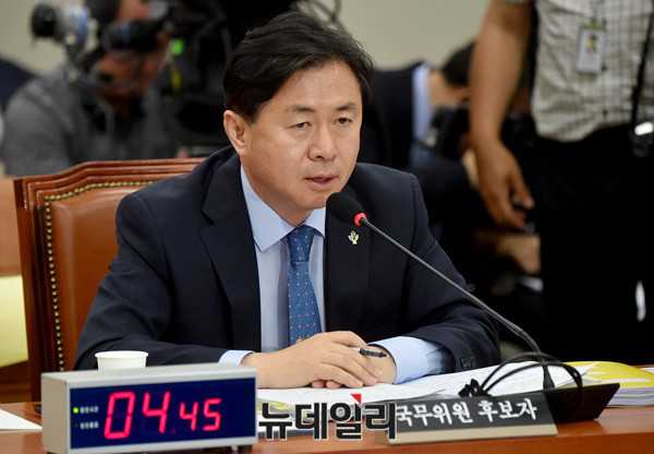 김영춘 해양수산부 장관 후보자가 14일 오후 국회에서 열린 인사청문회에 참석해 의원들의 질문에 답하고 있다.