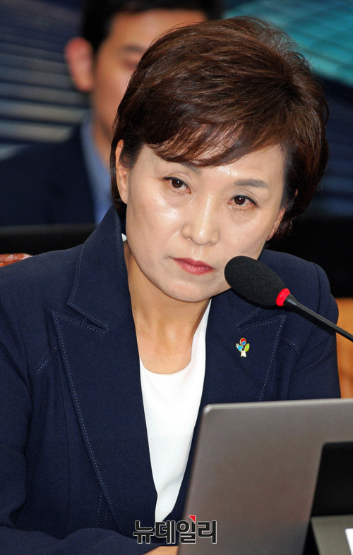 김현미 국토교통부 장관 후보자가 15일 국회에서 열린 인사청문회에 참석해 의원들의 질문에 답하고 있다. 이날 오전 10시부터 진행된 인사청문회는 정회 후 오후 2시부터 속개 될 예정이다.