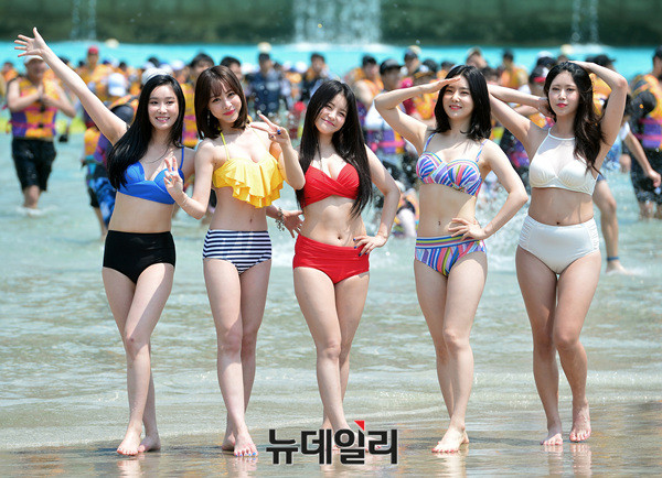 오션월드는 이날 '놀존심 있다면 모여 하태핫태 오션월드(제대로 놀 자존심 있는 사람 모여)' 콘셉트로 브레이브걸스, 미스코리아 쌍둥이 자매 김민정, 김나경 등 모델들과 함께 사진행사를 개최했다. (강원도 홍천=뉴데일리 공준표)