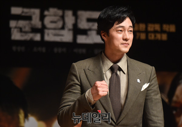 영화 '군함도' 제작보고회가 15일 오전 서울 용산구 국립중앙박물관 극장 용에서 열린 가운데 배우 소지섭이 포즈를 취하고 있다.