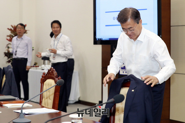 문재인 대통령이 15일 오전 청와대 여민관 소회의실에서 수석 보좌관 회의를 주재하고 있다. (사진=청와대)