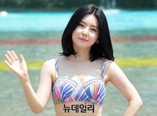 브레이브걸스(Brave Girls : 민영, 유정, 은지, 유나, 하윤) 유나가 15일 오후 강원도 홍천군 비발디파크 오션월드에서 열린 '2017 오션월드 포토데이'에 참석해 포토타임을 갖고 있다.