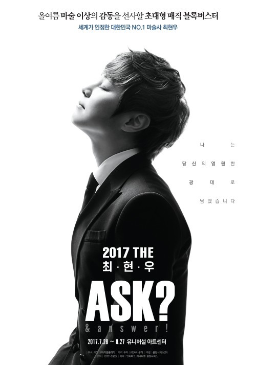 마술사 최현우가 올 여름 더욱 강력한 스케일로 돌아온다.마술사 최현우의 매직 블록버스터 공연 '2017 THE 최현우 Ask? & answer!'(이하 'Ask?')가 7월 28일부터 8월 27일까지 유니버설 아트센터에서 공연된다.최현우는 '매직콘서트' 브랜드를 탄생시키며 매번 새로운 시도로 국내 마술의 패러다임을 이끌어왔다. '더 셜록', '더 브레인' 등 다양한 주제의 13개 프로덕션으로 1300회 이상 공연하며 90만명 이상의 관객을 동원했다.지난해 연말 첫 선을 보인 'Ask?'는 최현우가 20여 년간 선보여온 매직 콘서트의 완성판이자, 국내 최초·최대 규모로 시도되는 역대급 스케일의 공연으로 호평을 받으며 큰 사랑을 받았다.당시 11톤 트럭 5대 분량의 세트, 무대 전면을 활용한 감각적인 영상 맵핑, 드론 등 최신 기술을 접목한 무대 연출로 놀라운 무대를 선사했다.최현우 마술의 모든 것을 만날 수 있는 'Ask?'는 19일 오후 2시 하나티켓에서 선예매를 시작해 20일 인터파크, 하나티켓, 클립서비스에서 첫 티켓을 오픈한다. 오는 25일까지 조기예매 시 VIP 30%, R·S 40% 와 학생할인 30% 할인 혜택을 받을 수 있다.[사진=클립서비스]