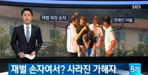 SBS 8시뉴스는 지난 16일 "서울의 한 사립초등학교 수련회에서 학생이 같은 반 학생 4명에게 발로 밟히고 야구방망이로 맞았으나, 학교 측은 피해자는 있지만 의도적으로 폭행한 가해자들은 없다는 조사 결과를 내놨다"고 밝힌 뒤 "피해 어린이 부모는 가해자로 지목된 어린이 중 재벌 회장 손자와 연예인 아들이 포함된 사실이 조사 결과에 영향을 미친 것으로 의심하고 있다"고 전했다.
