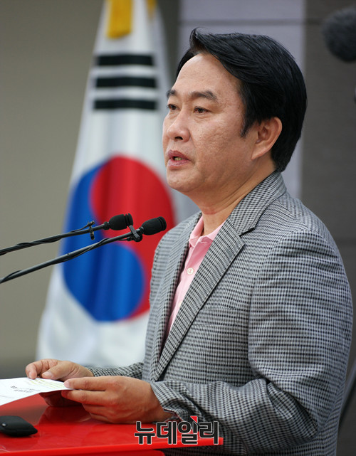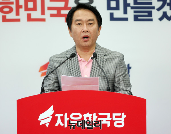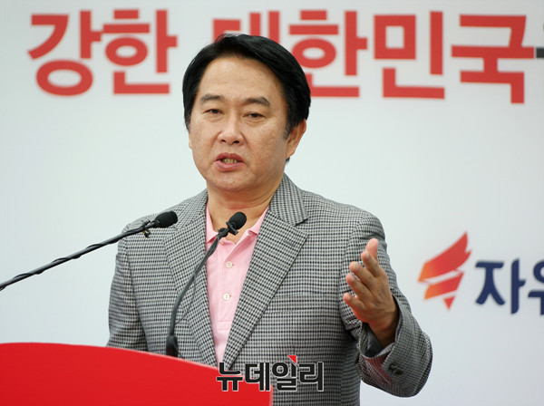 자유한국당 이성헌 의원이 18일 오전 여의도 당사에서 기자회견을 열고 7.3 전당대회 최고위원 출마를 공식 선언하고 있다.