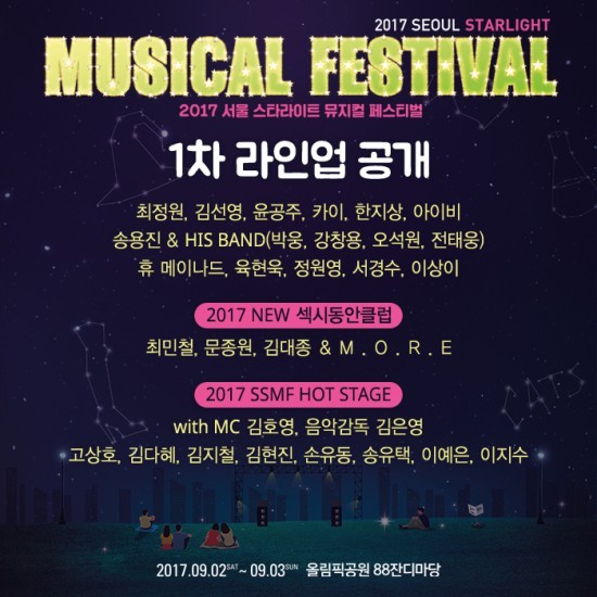 올해 2회째를 맞은 국내 최초 야외 뮤지컬 축제 '2017 서울 스타라이트 뮤지컬 페스티벌'(구, 자라섬 뮤지컬 페스티벌)이 1차 라인업을 공개했다.