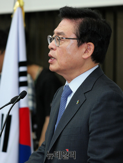 자유한국당 정우택 당대표 권한대행 겸 원내대표가 19일 오전 국회에서 열린 의원총회에 참석해 모두발언을 하고 있다.