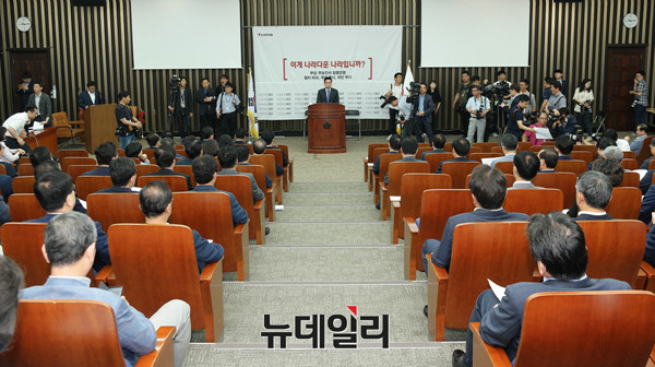 이날 정 원내대표와 의원들은 의원총회 도중 문재인 대통령의 장관 임명 강행에 대한 피켓 시위도 진행했다.