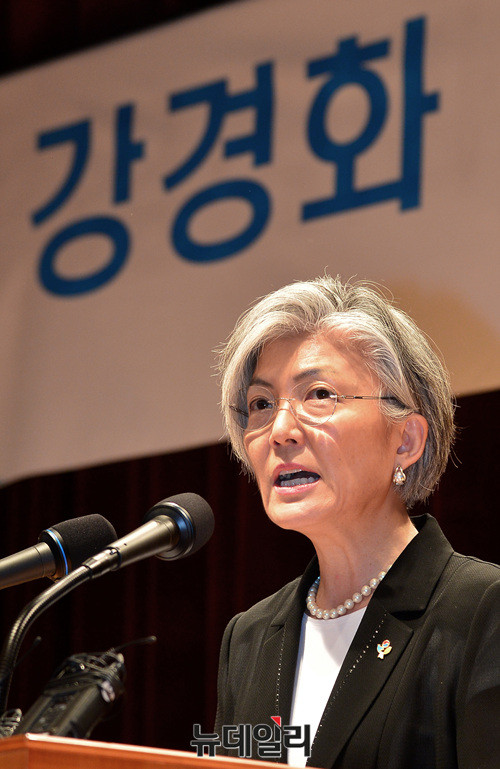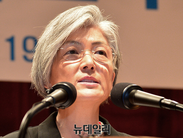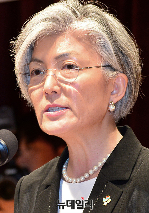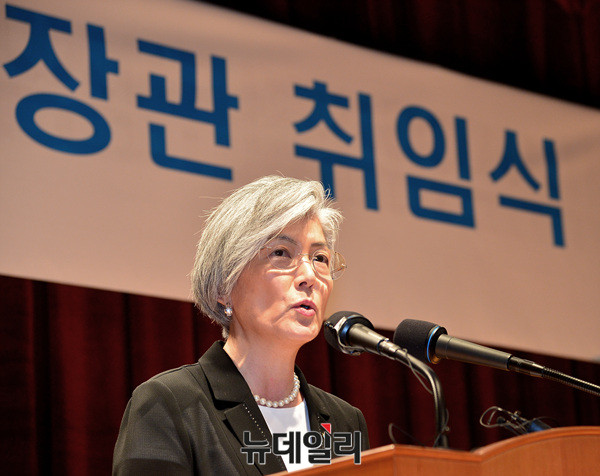 강경화 신임 외교부장관이 19일 오전 외교부에서 열린 취임식에 참석해 취임사를 하고 있다. 강 장관은 지난 18일 문재인 대통령에 의해 임명됐다.
