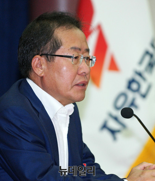 홍준표 자유한국당 당대표 후보가 20일 오후 국회 의원회관 세미나실에서 열린 '초·재선의원 모임 당대표 후보자 초청 토론회'에 참석해 정견발표를 하고 있다.