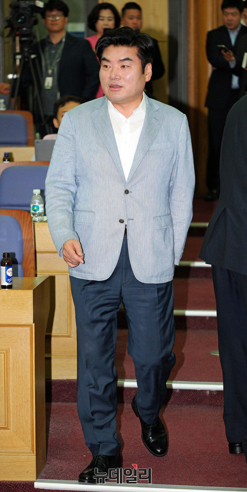 원유철 자유한국당 당대표 후보가 20일 오후 국회 의원회관 세미나실에서 열린 '초·재선의원 모임 당대표 후보자 초청 토론회'에 입장하고 있다.