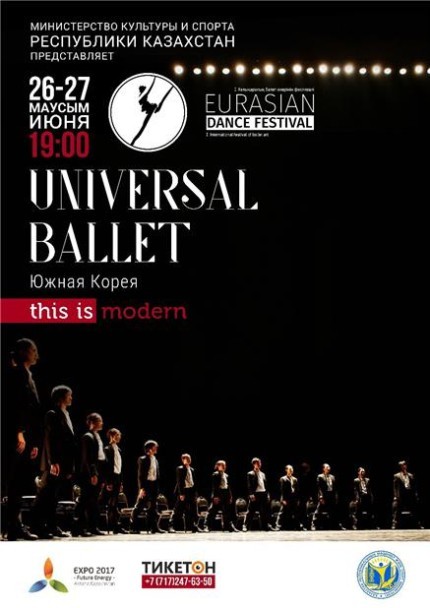 유니버설발레단(단장 문훈숙)의 모던 발레 '디스 이스 모던(This is modern)'이 '유라시안 댄스 페스티벌' 무대에 오른다.오는 26~27일 카자흐스탄의 수도 아스타나에서 열리는 '유라시안 댄스 페스티벌'은 '미래 에너지'로 열리는 '2017 아스타나 엑스포'의 일환이다. 유니버설발레단은 아스타나 오페라하우스에서 '디스 이스 모던'을 선보인다.이번 공연은 카자흐스탄 문화체육관광부의 공식 초청으로 이뤄졌으며, 러시아 모스크바에 이은 두 번째 유라시안 공연이다. 공식 초청된 예술단체는 한국의 유니버설발레단과 미국의 배드 보이즈 오브 댄스 단 2곳이다.