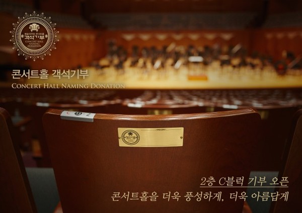 예술의전당(사장 고학찬)이 '콘서트홀 객석 기부' 대상을 2층까지 확대한다.대상 구역은 C블록의 82석이다. 기부자는 희망하는 문구를 새긴 명판을 해당 좌석에 10년 동안 부착하는 등의 예우를 받을 수 있다.기부 신청은 예술의전당 홈페이지를 통해 가능하다. '콘서트홀 객석기부'를 통한 수익금은 예술의전당 기획 공연 제작과 시설 개선 등을 통해 관객에게 혜택이 주어지는 데 사용된다.예술의전당은 2013년부터 '콘서트홀 객석기부'를 통해 지난 3년여 간 약 200석의 좌석이 기부됐다. 1층 C블록은 80% 이상 기부자를 만났으며, 각 좌석에는 기부자의 이름과 음악·가족·지인에 대한 사랑을 담은 문구들이 눈에 띈다.그 동안 1층 좌석 기부와 동시에 2층 좌석 기부에 대한 문의와 요청이 끊이지 않았으며, 이에 예술의전당은 2층 C블록 82석을 추가 오픈하기로 결정했다. 기존의 1층 좌석이 1석당 기부 금액이 500만 원인 것에 비해 2층 좌석은 1석당 300만 원이다.예술의전당 측은 "이번 금액조정은 기부의사가 있었지만 망설이던 사람들에게 기부에 대한 부담감을 낮추고 접근성을 높이기 위해 이뤄졌다"며 "클래식 음악과 순수예술을 사랑하는 다양한 사람들의 기부가 증가할 것으로 기대한다"고 밝혔다.[사진=예술의전당]