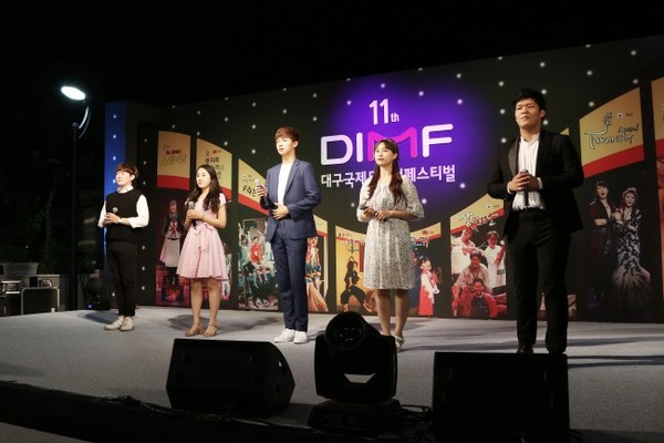 개막작이 끝난 후 야외광장에서 열린 개막식에서 장익현 딤프 이사장은 "1년을 기다려 다시 딤프의 계절이 왔다. 올해 딤프는 새로운 10년을 시작하는, 첫 발걸음을 내딛는 뜻깊은 자리이다. 개막공연을 유쾌하고 순조롭게 잘 마쳐서 안도의 숨을 쉬고 있다"고 말했다.권영진 대구시장은 "뮤지컬을 좋아하는 대구 시민들, 그리고 오늘 86%는 대구가 아닌 서울과 해외에서 오셨다. 모두 환영한다. 11회째를 맞는 딤프에 많은 사랑을 보내주셔서 감사하다. 대구는 오늘부터 18일간 날씨보다 더 뜨거운 뮤지컬의 열기로 행복할 것"이라며 성원을 부탁했다.한편, 한국을 포함한 총 9개국이 참가하는 제11회 딤프는 공식초청작 9편과 4개의 창작지원작, 지역을 대표하는 특별공연 4편, 국내외 9개 대학이 열전을 벌일 대학생뮤지컬페스티벌 등 총 26개의 공연이 95회에 걸쳐 무대에 오른다. 7월 10일까지.문의 DIMF 053-622-1945.