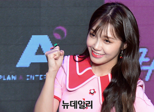 에이핑크(APINK : 박초롱, 윤보미, 정은지, 손나은, 김남주, 오하영) 정은지가 26일 오후 서울 마포구 신한카드 판스퀘어에서 열린 여섯 번째 미니앨범 '핑크업(PINK UP)' 발매기념 쇼케이스에 참석해 포토타임을 갖고 있다.