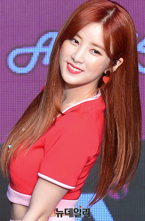 에이핑크(APINK : 박초롱, 윤보미, 정은지, 손나은, 김남주, 오하영) 박초롱이 26일 오후 서울 마포구 신한카드 판스퀘어에서 열린 여섯 번째 미니앨범 '핑크업(PINK UP)' 발매기념 쇼케이스에 참석해 포토타임을 갖고 있다.